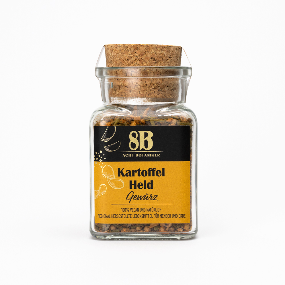 Geben Sie Ihrem Kartoffelgericht den letzten Schliff mit der 8B Gewürzmischung Kartoffel Held. 100% natürliche Gewürzmischung ohne Zusätze.