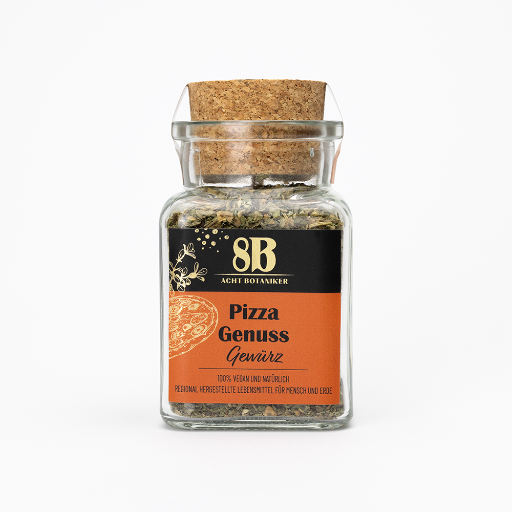 Geben Sie Ihrer Pizza den letzten Schliff mit der 8B Gewürzmischung Pizza Genuss. 100% natürliche Gewürzmischung ohne Zusätze. 100% vegan und natürlich, regional hergestellte Lebensmittel.